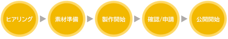 お申し込みから公開までの期間は約1ヵ月。アプリ公開後もサポートいたします。